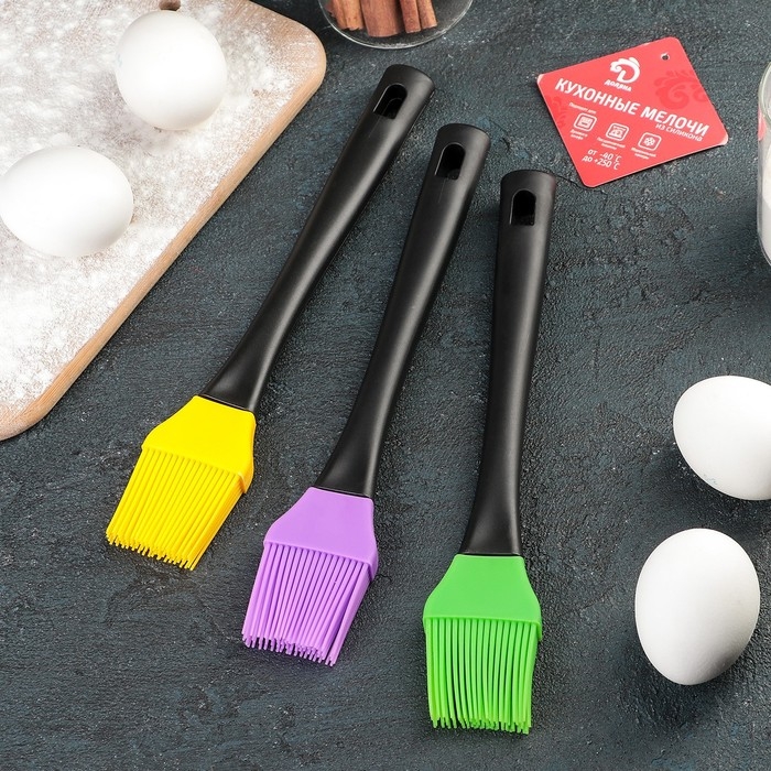 Кисть пригодится для смазывания маслом сковород и противней, создания глянцевого румяного блеска на сдобных булочках, пирожках и других кондитерских изделиях, а также для нанесения сахарной или шоколадной глазури на кексы и куличи. Это позволяет экономить время на приготовлении кулинарных изделий.