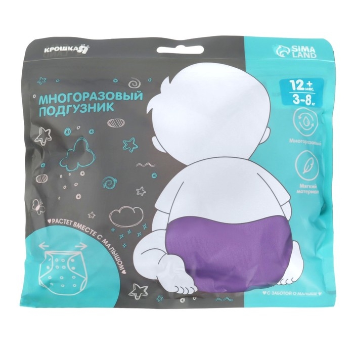 Многоразовый подгузник, 3-15 кг, цвет фиолетовый, Крошка Я