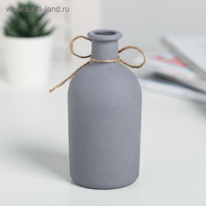 Она выполнена из стекла, имеет нежную серую окраску и украшена декоративной веревочкой с деревянной пуговицей.