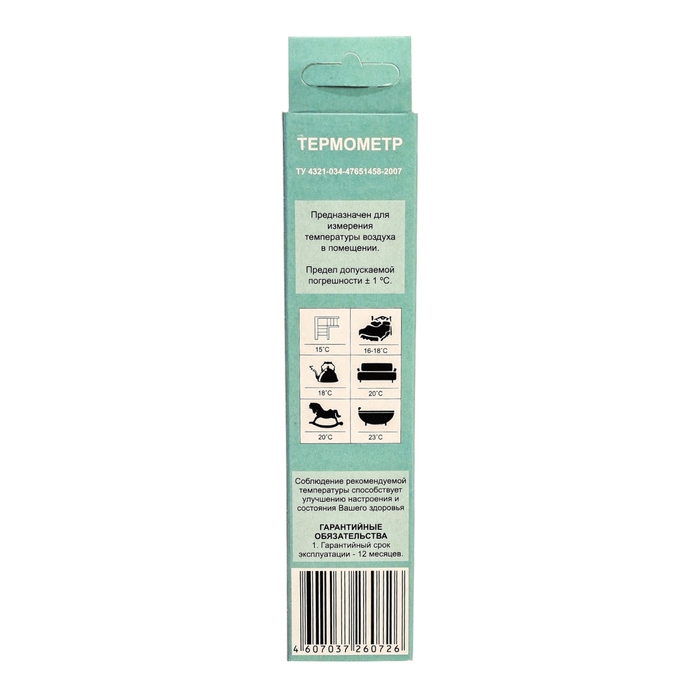Термометр сувенирный комнатный на пластиковой основе. Предназначен для измерения температуры воздуха в помещении. Изготовлен без применения ртути.