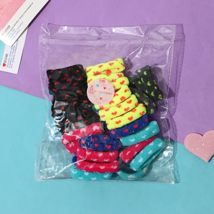 Резинка для волос "Махрушка" (набор 36 шт) сердечки, 5 см