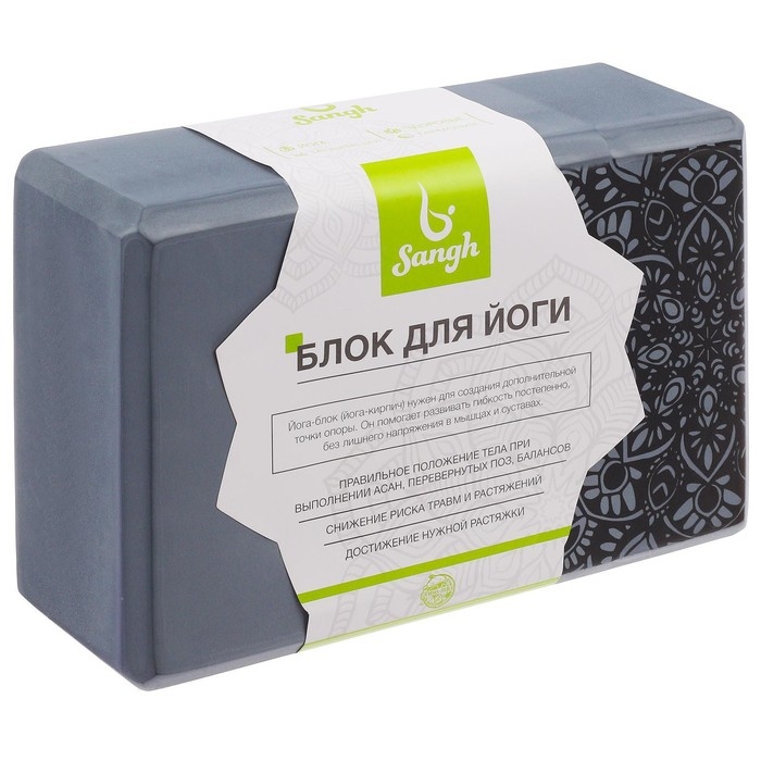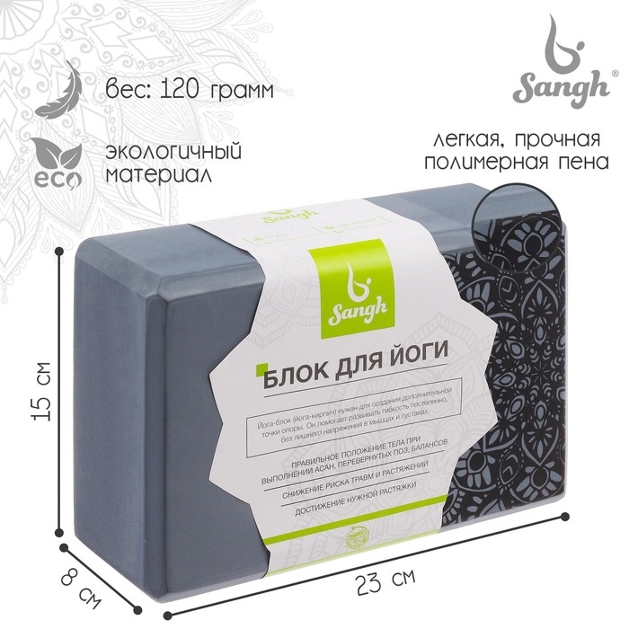 Блок для йоги Sangh, 23×15×8 см, цвет серый