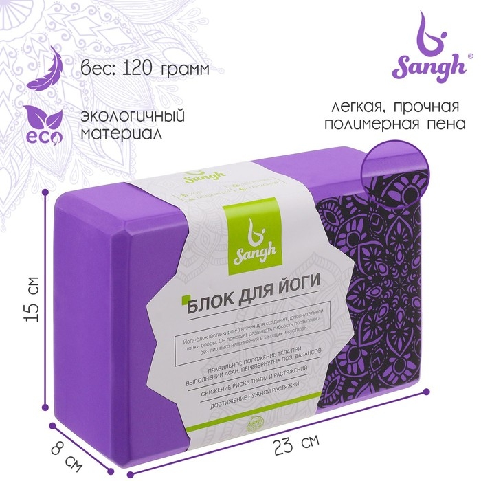 Блок для йоги Sangh, 23×15×8 см, цвет фиолетовый