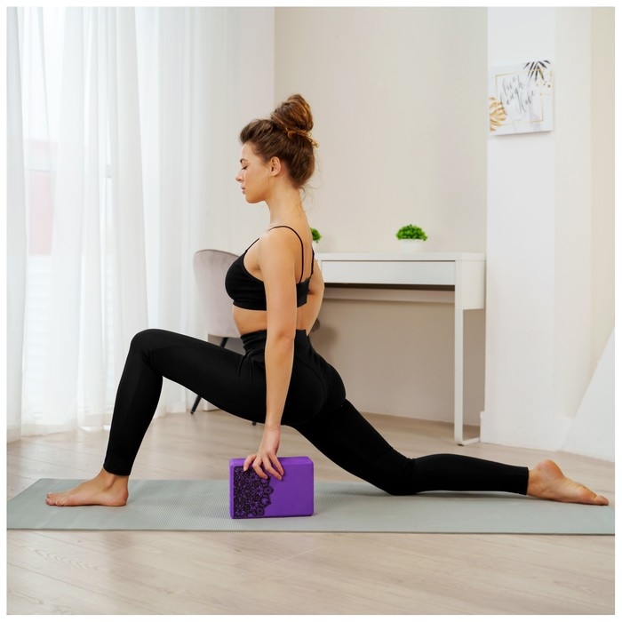 Йога-блок (йога-кирпич) применяется для создания дополнительной точки опоры. Он помогает развивать гибкость постепенно, без лишнего напряжения в мышцах и суставах. Необходим для тех, кто только начинает заниматься йогой, и кому не хватает гибкости, чтобы иметь правильную опору для рук и ног при выполнении асан.