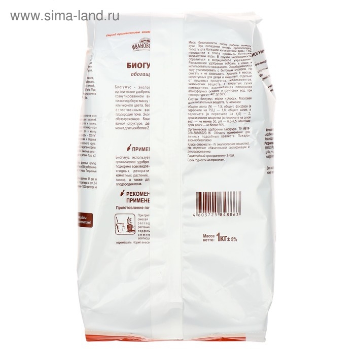 Органическое Удобрение Биогумус, Ивановское, 1 кг