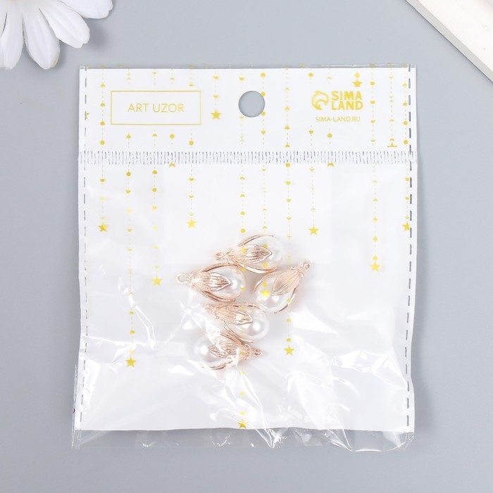 Декор для творчества пластик "Жемчужинка в раковине с петелькой" набор 5 шт 1,2х1,6 см