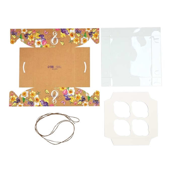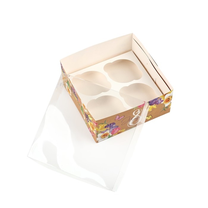 Коробка для капкейков, кондитерская упаковка, 4 ячейки «С 8 марта», 16 х 16 х 7.5 см