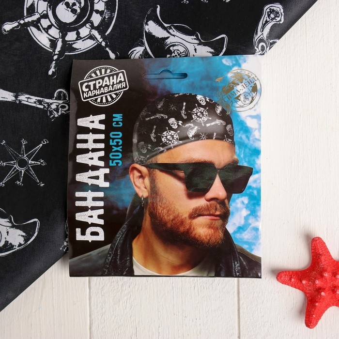 Повяжите бандану на лицо, она прекрасно защитит дыхательные органы от пыли. А на шее, рюкзаке или запястье станет стильным аксессуаром. Такой платок отлично выполнит свою основную функцию: оградит голову от солнечных лучей. А тематический принт позволит создать оригинальный образ для пиратской вечеринки.