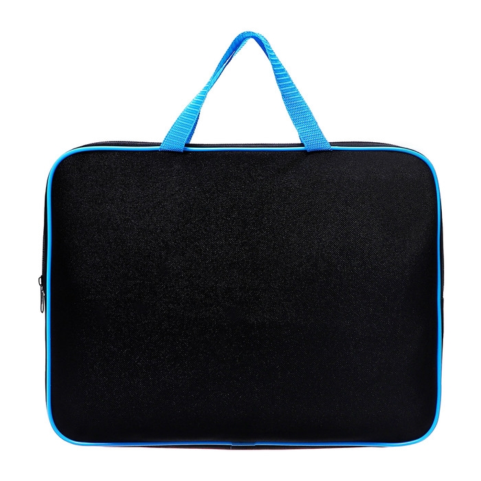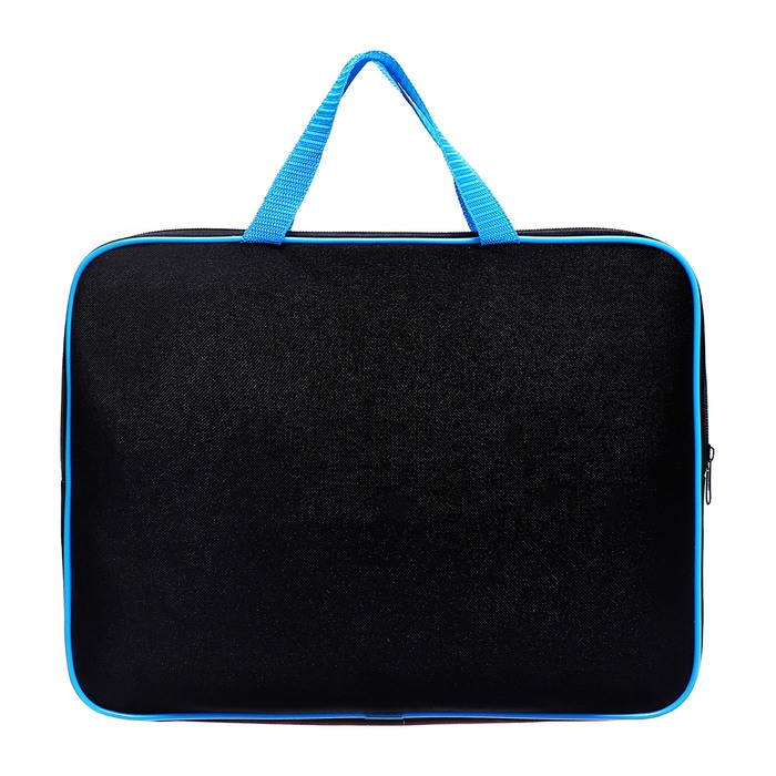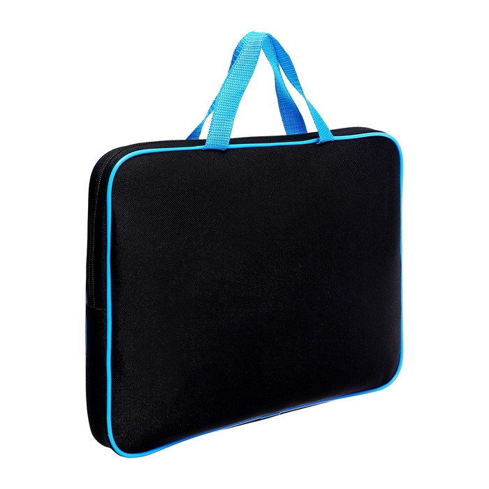 Папка с ручками текстильная А4, 350 х 265 х 45 мм, ПМД 2-42 "Офис", внутренний карман, чёрная/ярко-голубая