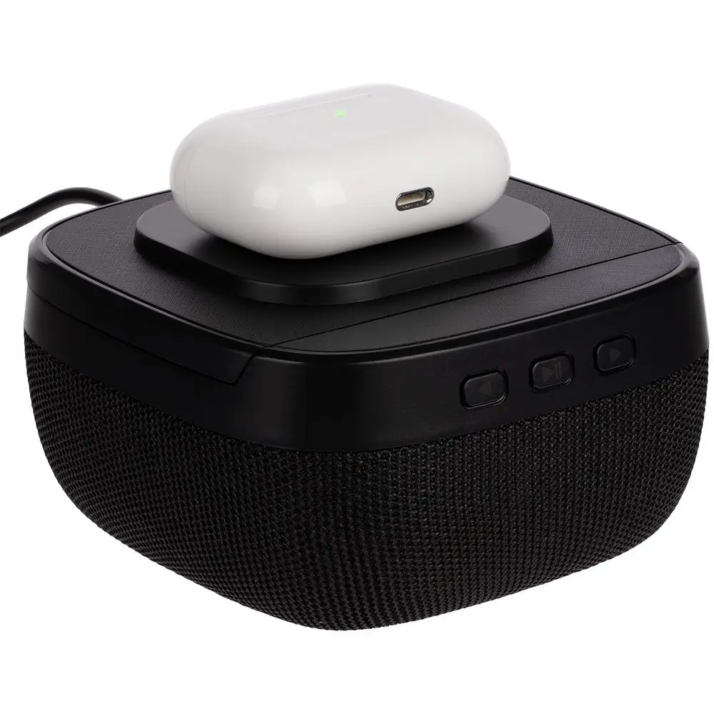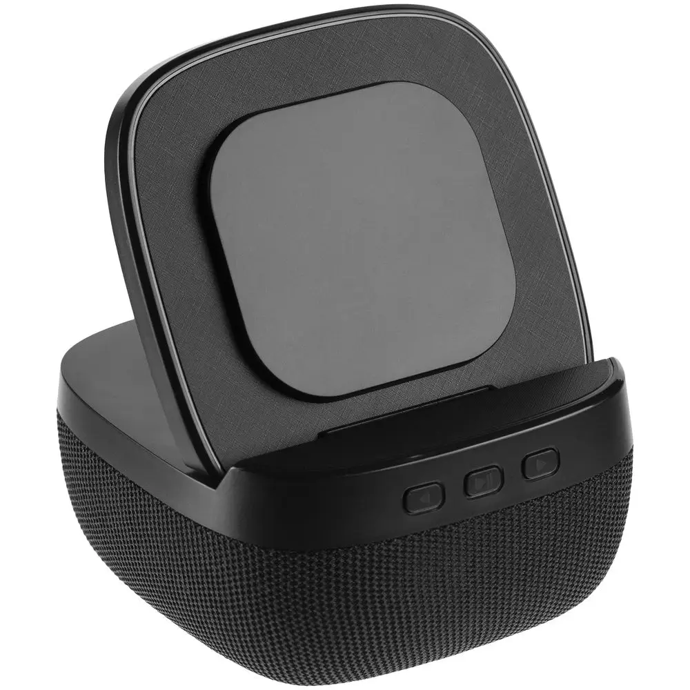Колонка c беспроводной зарядкой Esca и подсветкой лого, черная