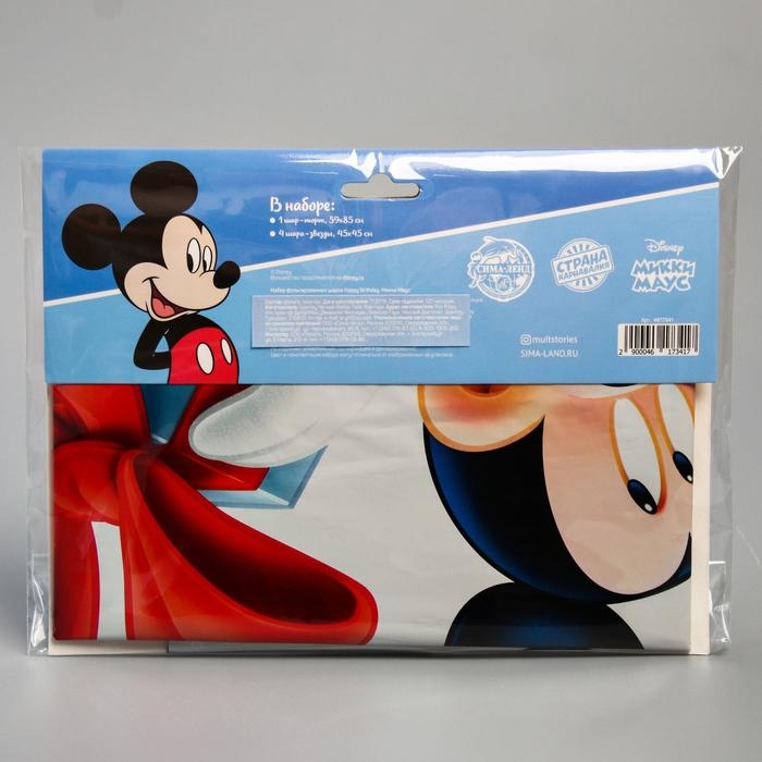 Букет из шаров фольгированных "Happy Birthday", набор 5 шт, Микки Маус, 4 звезды, тортик