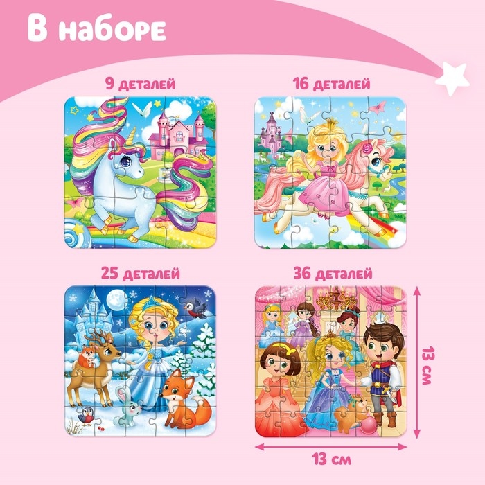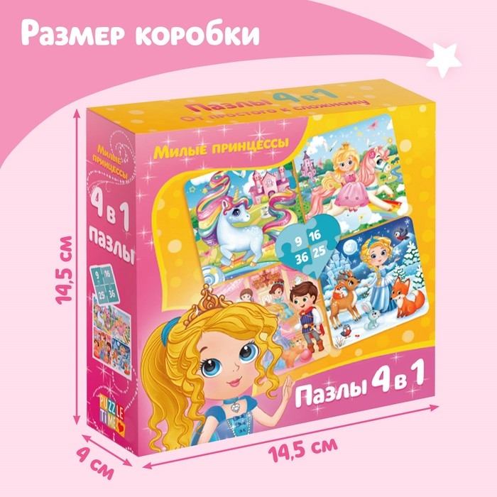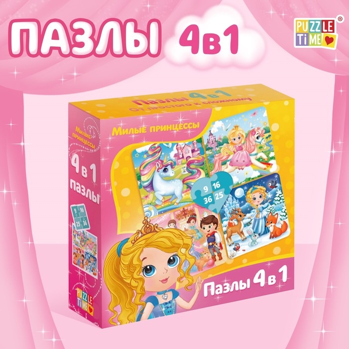 Пазл 4 в 1 «Милые принцессы», 86 деталей