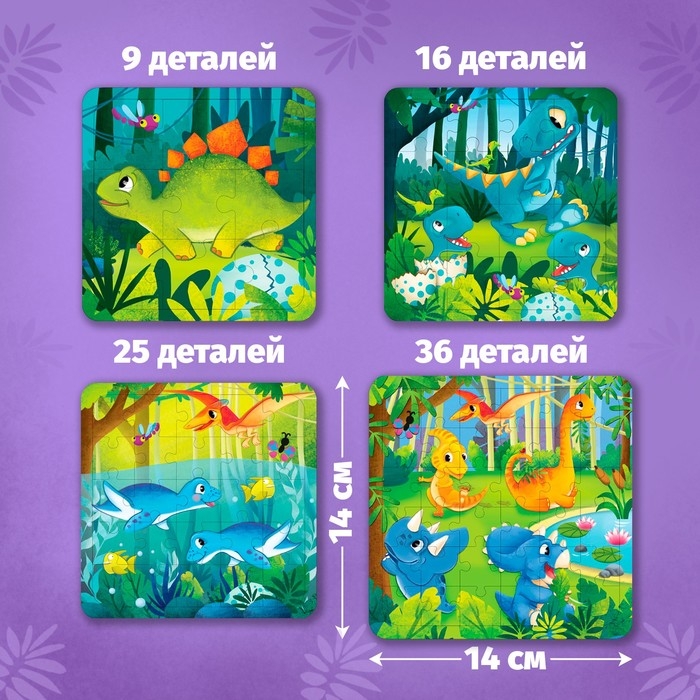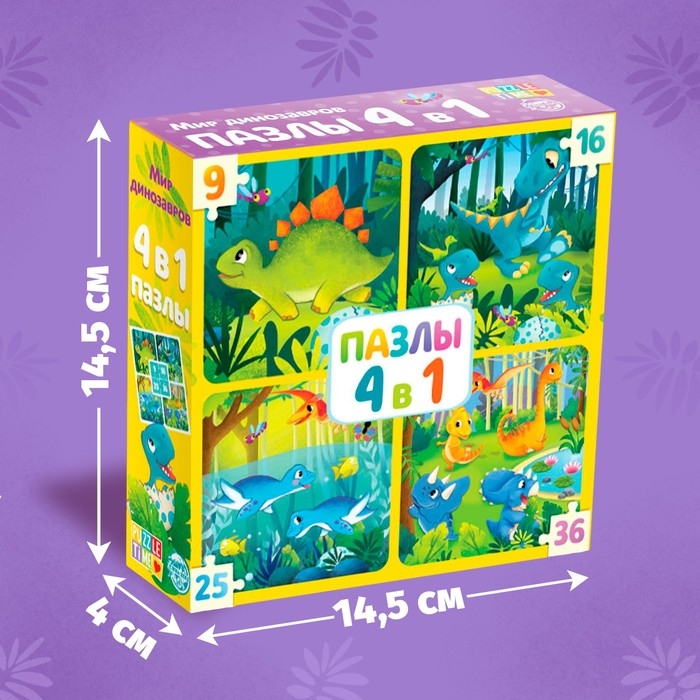 Пазл 4 в 1 «Мир динозавров», 86 деталей