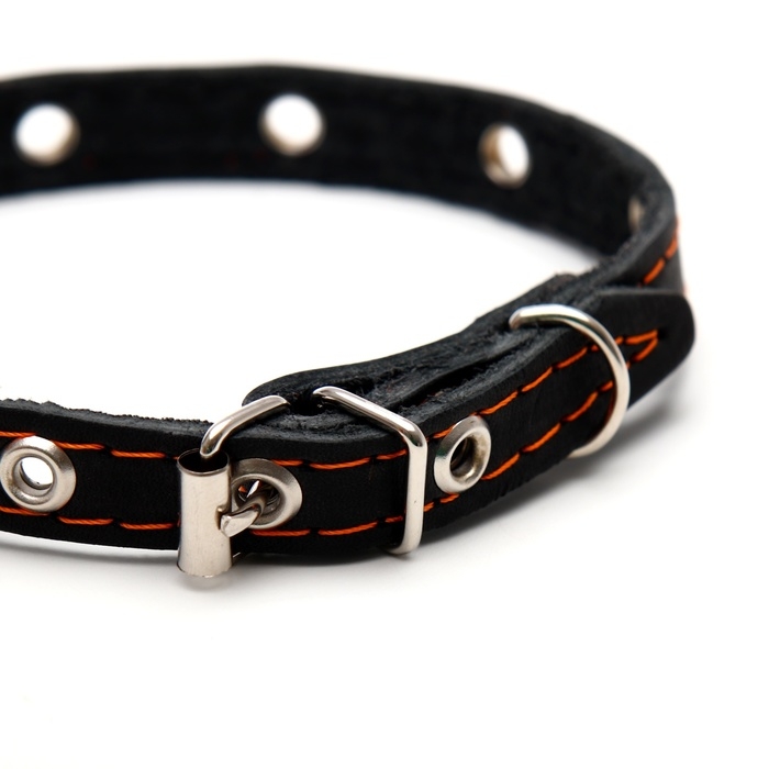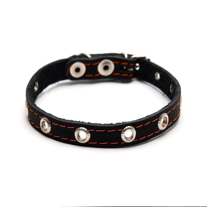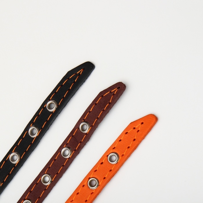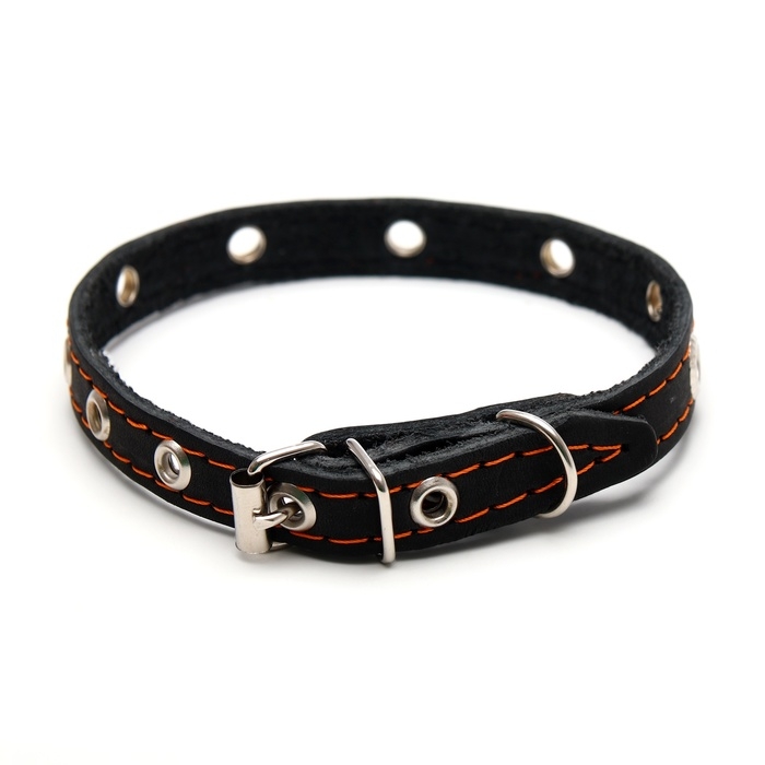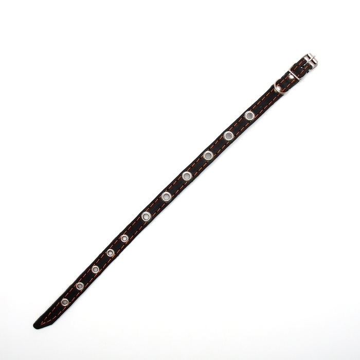 Ошейник кожаный однослойный с рифлеными люверсами, 35х1,2 см, ОШ 10-28 см, безразмерный, микс цветов