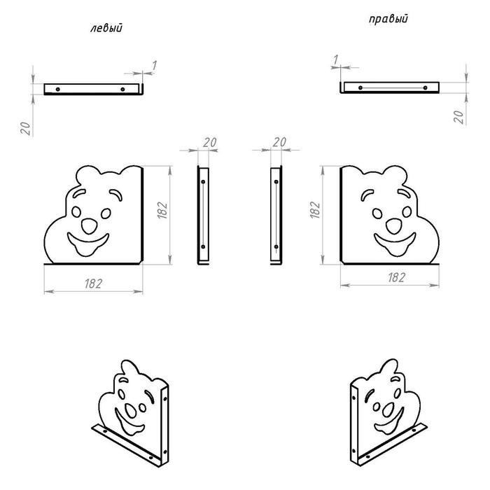 Кронштейн "Мишка" 180х180 мм, белый,10 шт