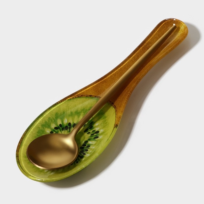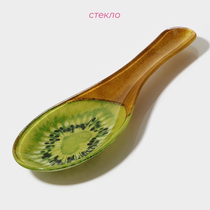 Подставка стеклянная под ложку Доляна «Романтичный киви», 23,5×8,3×1,5 см