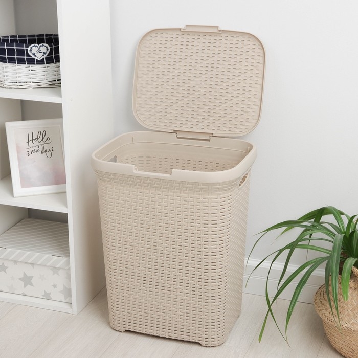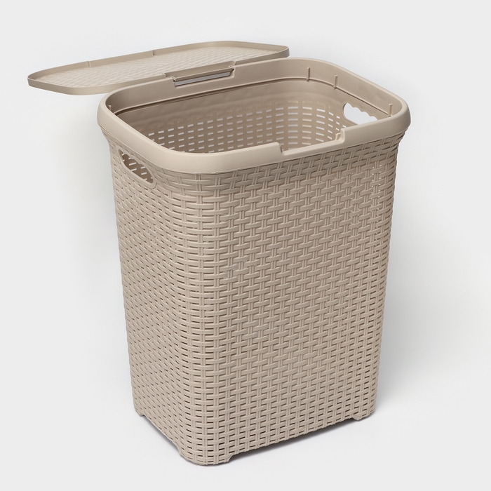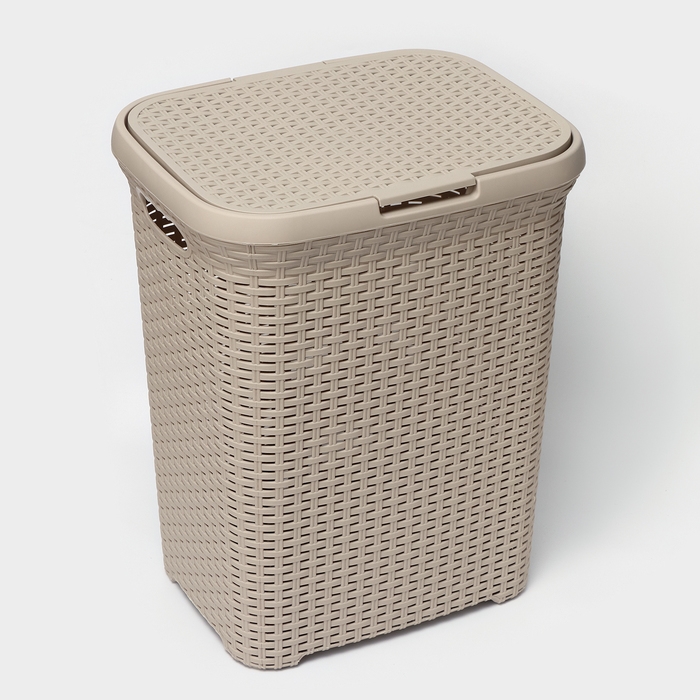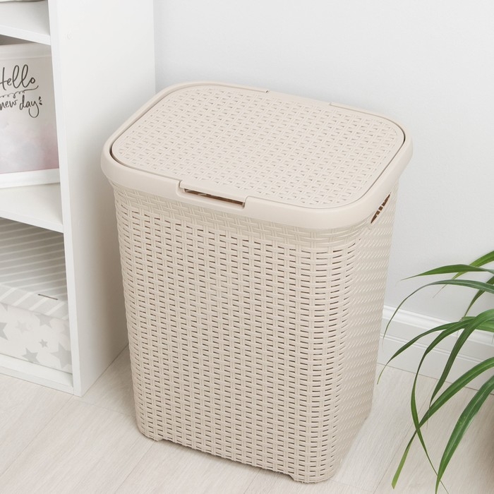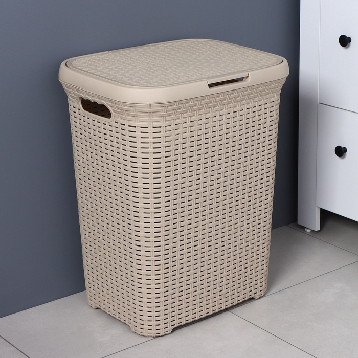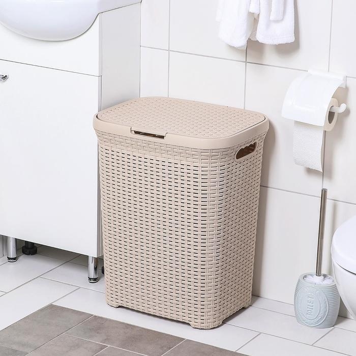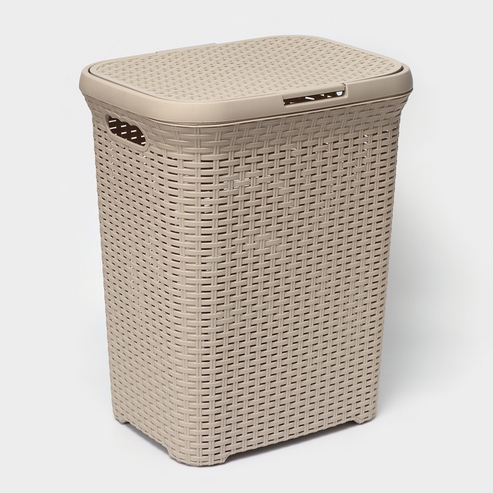 Корзина бельевая с крышкой «Ротанг», 60 л, 34×44×55 см, цвет латте