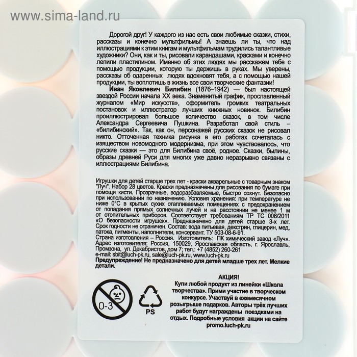 Акварель Луч "Школа" творчества, 28 цветов, без кисти