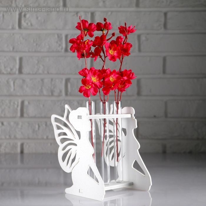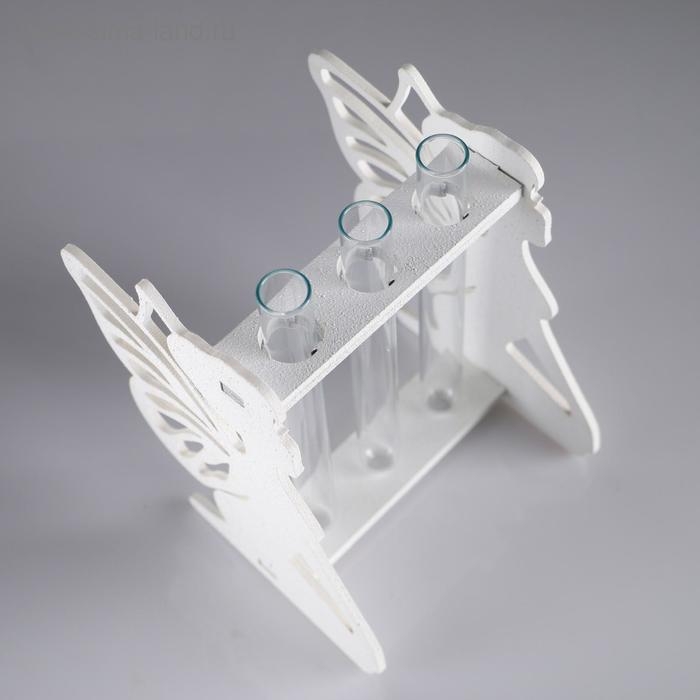 Кашпо деревянное 13.3×11.6×15.5 см с 3 колбами "Фея", белый Дарим Красиво
