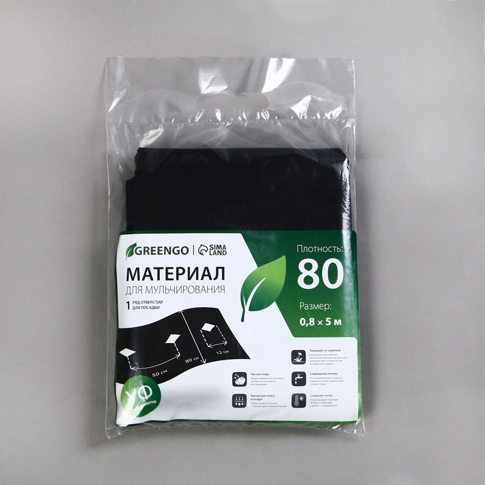 Материал мульчирующий, с перфорацией, 5 × 0,8 м, плотность 80 г/м², спанбонд с УФ-стабилизатором, чёрный, Greengo, Эконом 30%