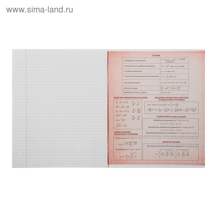 Тетрадь предметная Calligrata "Неон", 48 листов в клетку Алгебра, со справочным материалом, обложка мелованный картон, УФ-лак, блок офсет