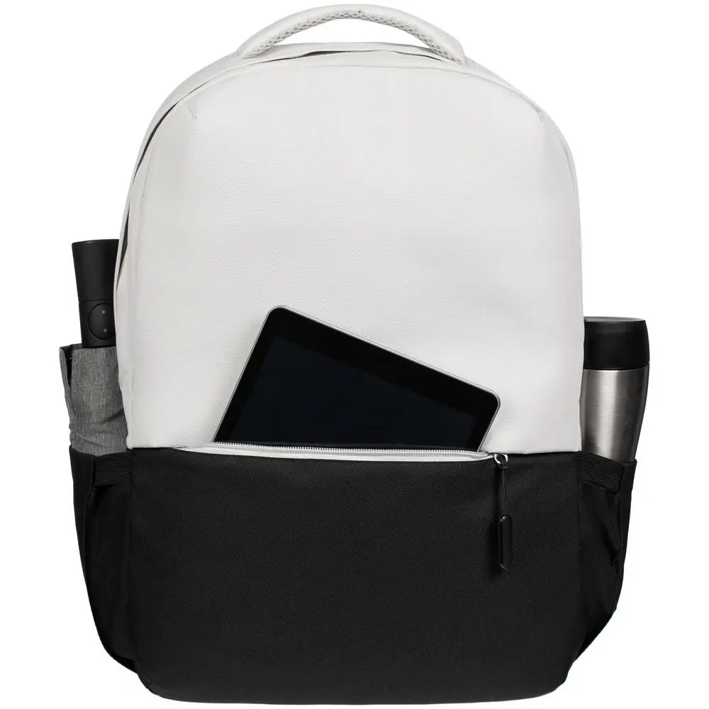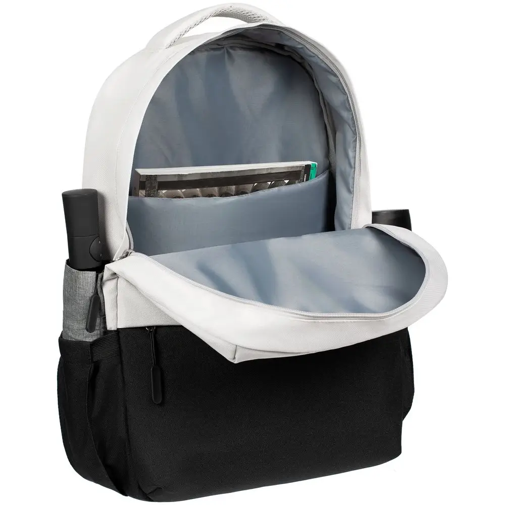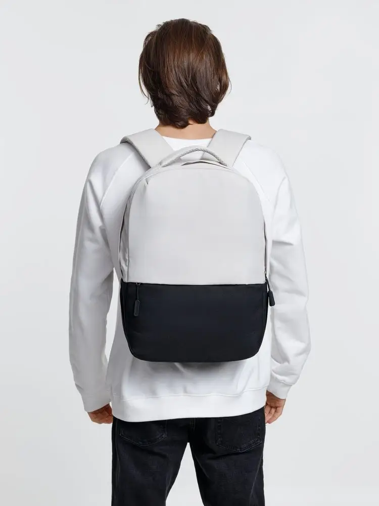 Двухцветное исполнение с темным низом и более светлым верхом, с одной стороны, помогает рюкзаку дольше сохранять опрятный внешний вид, а с другой — позволяет активнее и контрастнее выделить логотип компании.