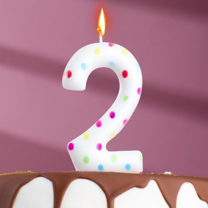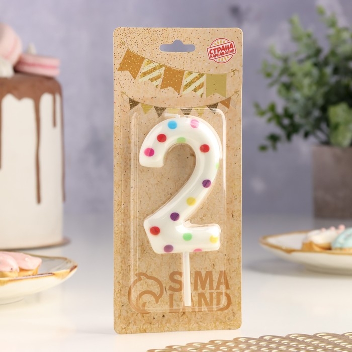 Свеча в торт на день рождения «Конфетти», цифра "2" , ГИГАНТ, 9 см