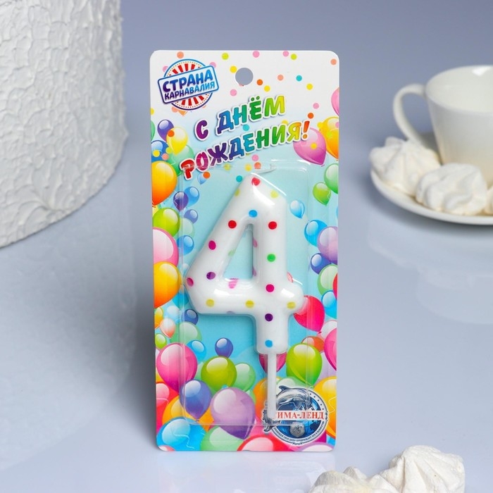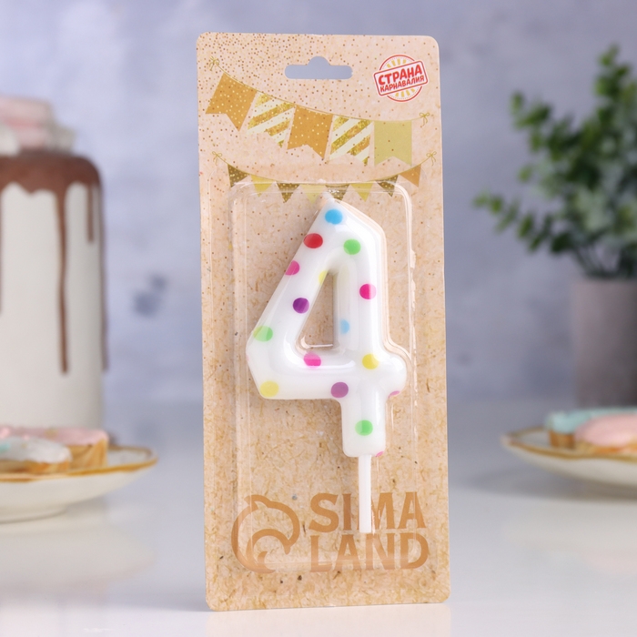 Свеча в торт на день рождения «Конфетти», цифра "4" , ГИГАНТ, 9 см
