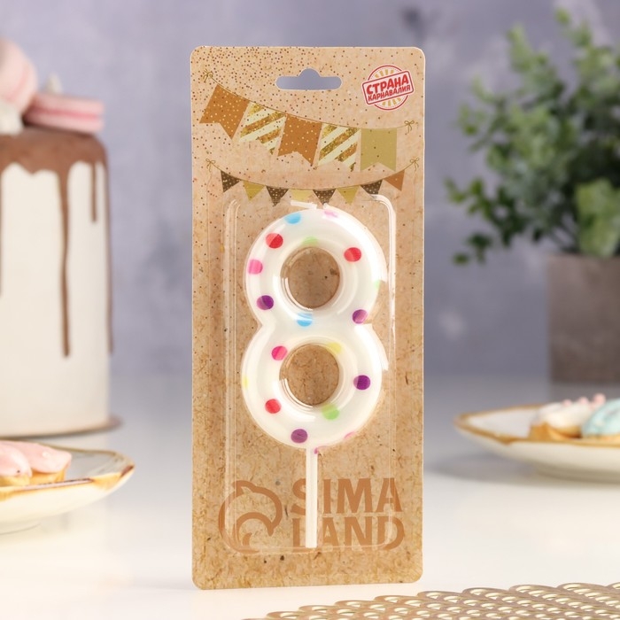 Свеча в торт на день рождения «Конфетти», цифра "8" , ГИГАНТ, 9 см