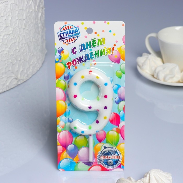 Свеча в торт на день рождения «Конфетти», цифра "9" , ГИГАНТ, 9 см