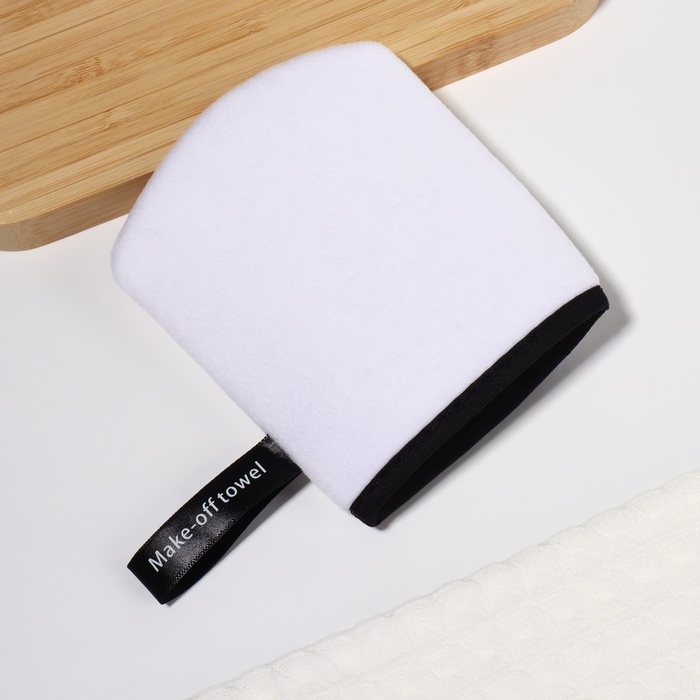 Варежка для умывания, 12,5 × 10 см, с подвесом, цвет белый/чёрный