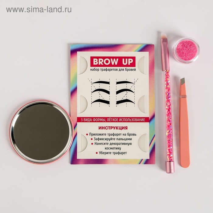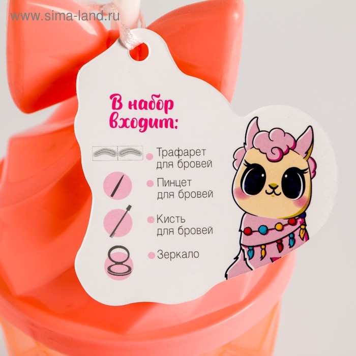 Подарочный набор для макияжа бровей «Милая альпака», пинцет, кисть для макияжа, зеркало, трафарет, BEAUTY FOX