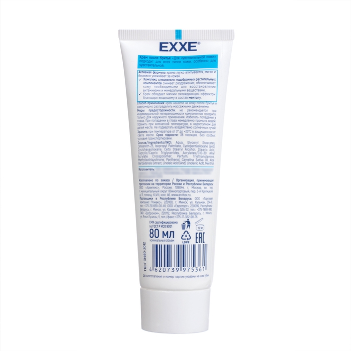 Крем после бритья Exxe sensitive для чувствительной кожи, 80 мл