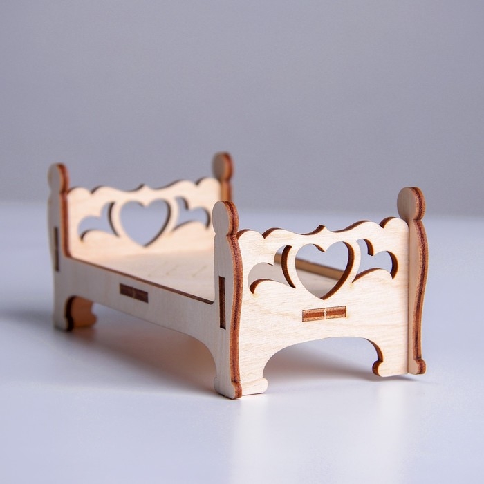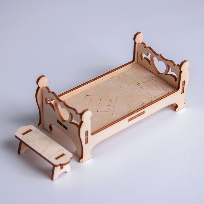 Деревянная мебель для кукол «Кровать с лавочкой»