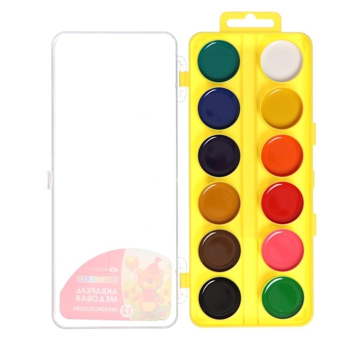 Акварель медовая ЗХК "Цветик", 12 цветов, в пластиковом пенале, без кисти