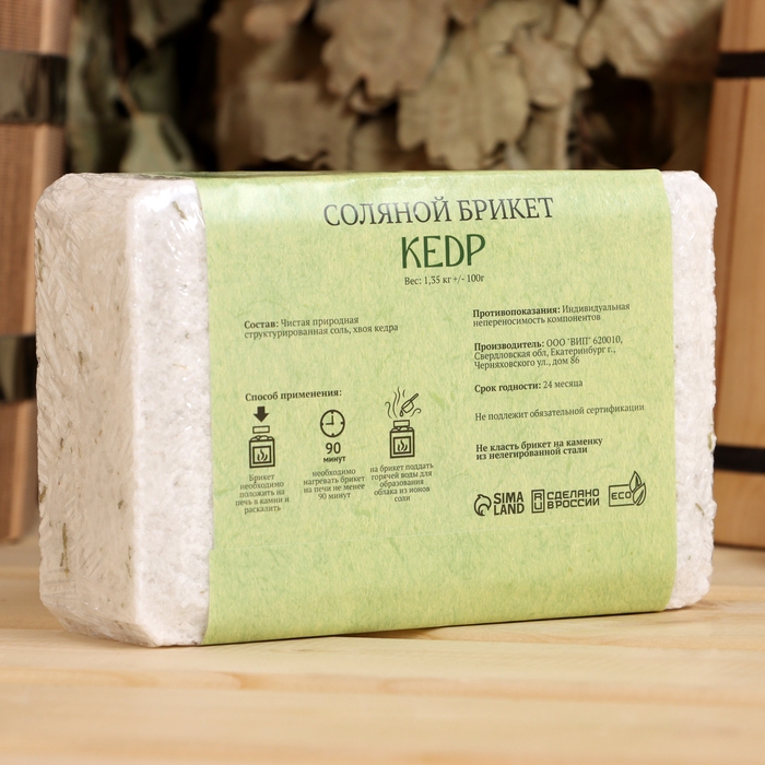 Применение: нагревайте брикет на печи не менее 90 минут, затем поддайте на него горячей воды. Соль наполнит воздух бани ионами, тем самым поможет снять усталость, улучшить кровообращение и общее самочувствие.