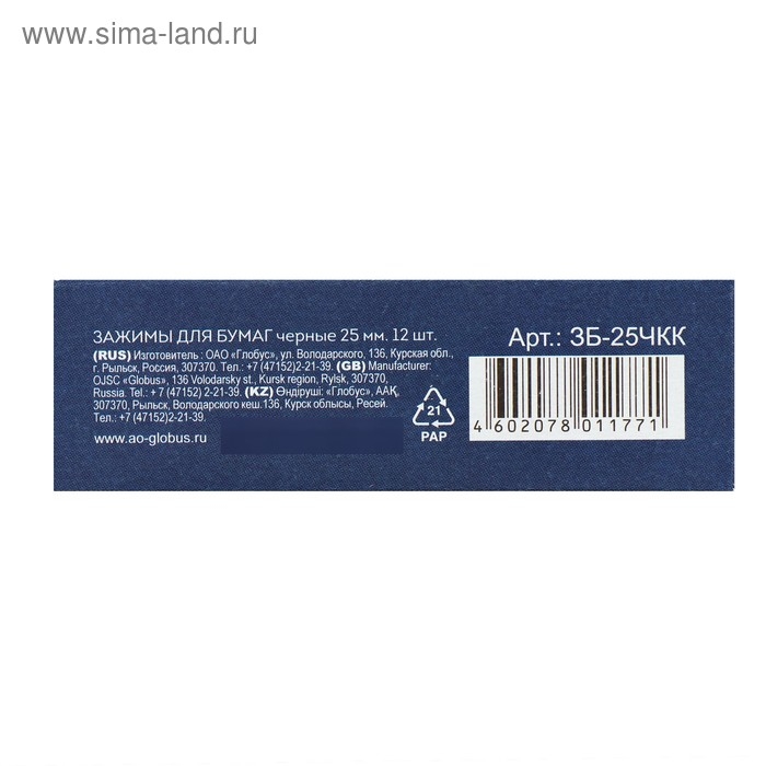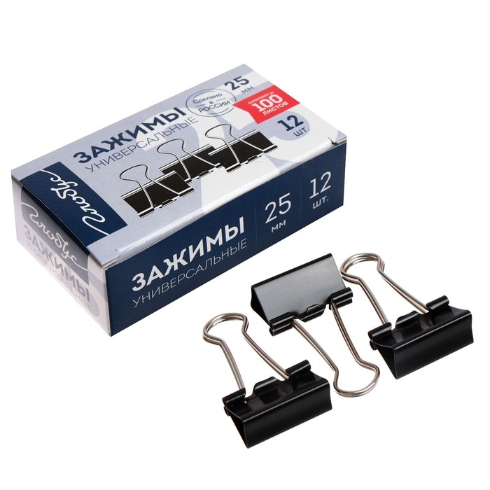 Зажимы для бумаг GLOBUS, 12 шт., 25 мм, чёрные