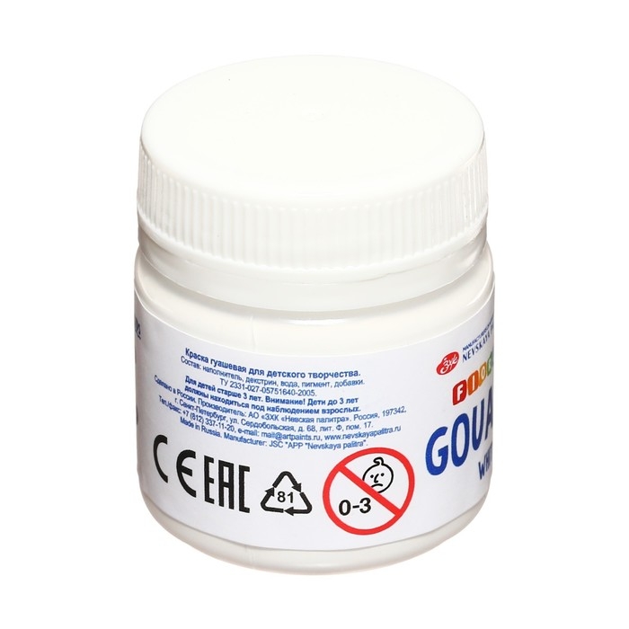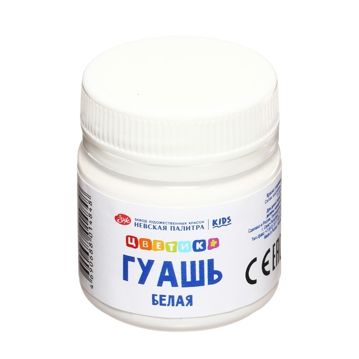 Гуашь в банке 40 мл, ЗХК "Цветик", белая, 3020104