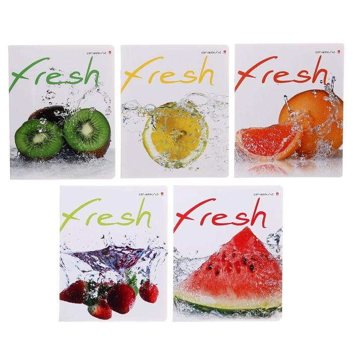 Тетрадь 48 листов в клетку "Фрукты", обложка мелованный картон, УФ-лак, МИКС