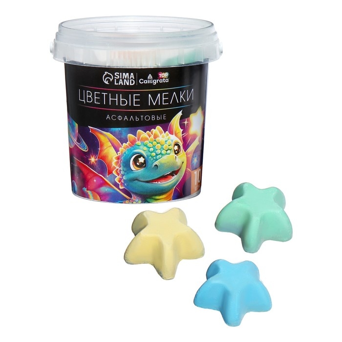 Мелки цветные для асфальта 10 штук Calligrata TOP, в форме звёздочки (3 х 1,3см; 5-7 гр)