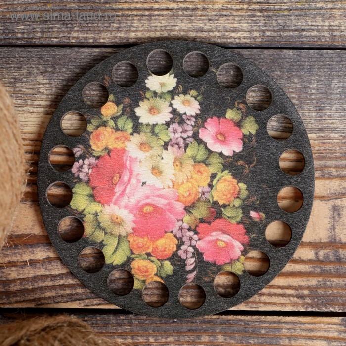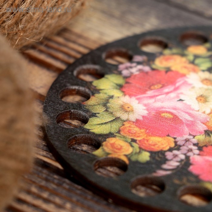 Заготовка для вязания "Жостовская роспись №1", донышко фанера 3 мм, 10 см, d=9мм