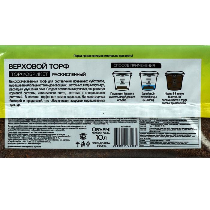 Торфобрикет Верховой торф раскисленный, 10 л. "БиоМастер"