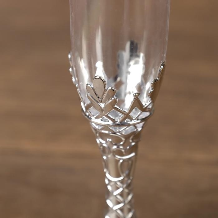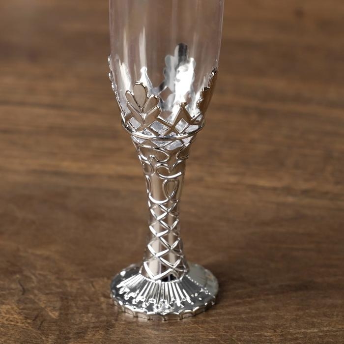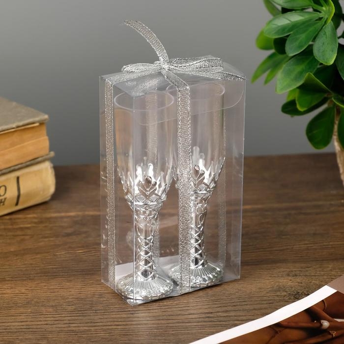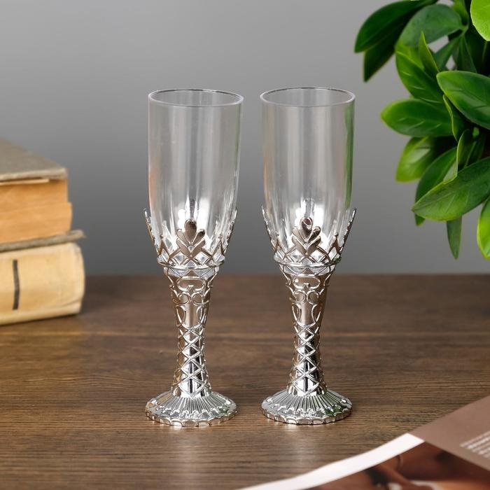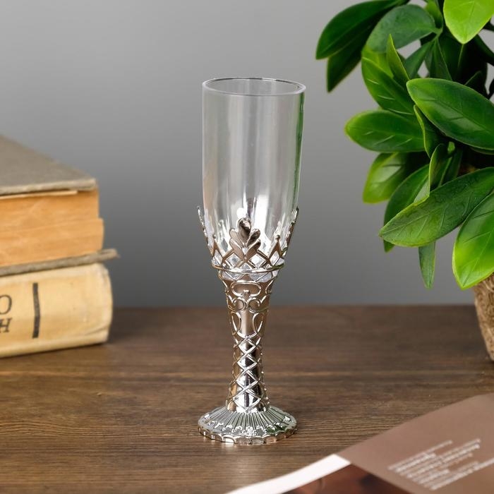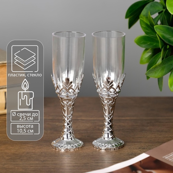 Подсвечник стекло, пластик "Бокалы" серебро набор 2 шт 10,5х3х3 см