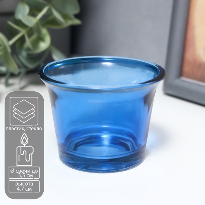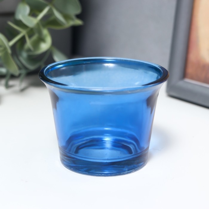 Подсвечник стекло на 1 свечу "Глянец" синий 4,7х6,2х6,2 см