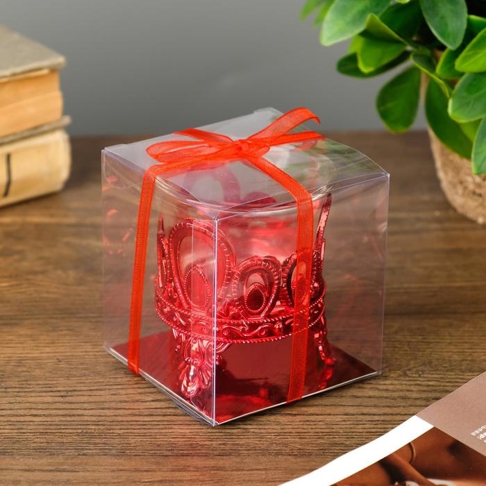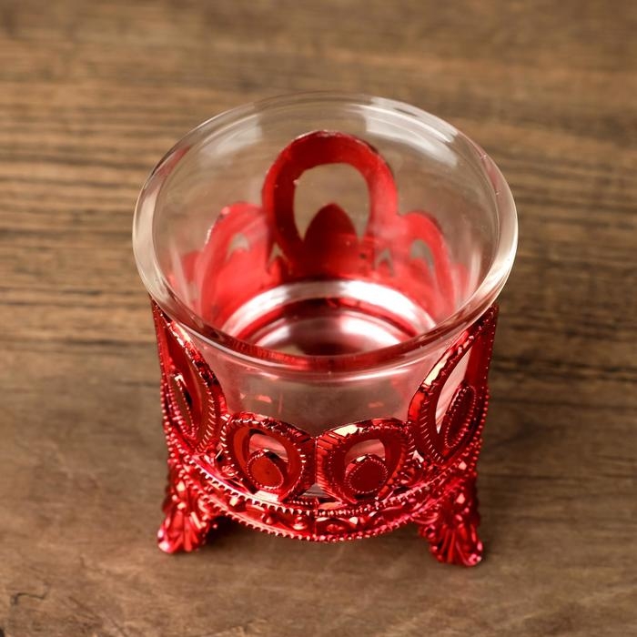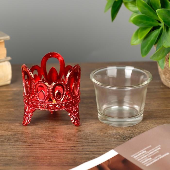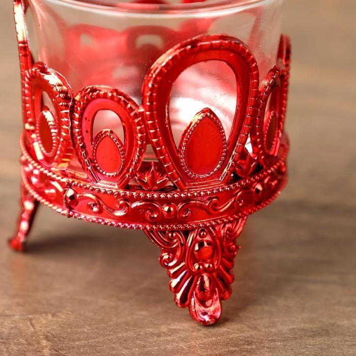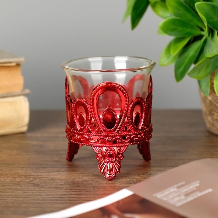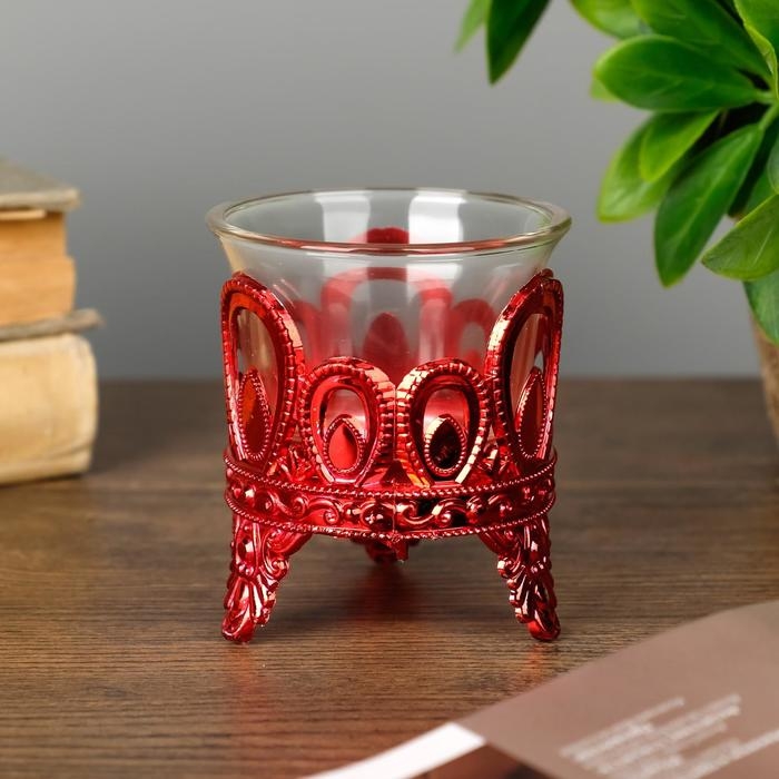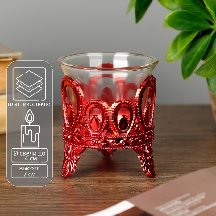 Подсвечник пластик, стекло на 1 свечу "Капельки" красный 7х6х6 см