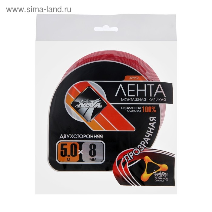Клейкая лента Nova Bright-fusion, прозрачная, двусторонняя, акриловая, 8 мм х 5 м