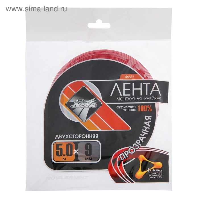 Клейкая лента Nova Bright-fusion, прозрачная, двусторонняя, акриловая, 9 мм х 5 м