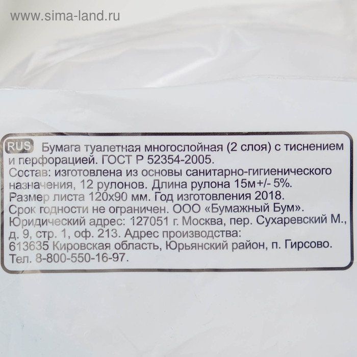 Туалетная бумага «Вятская», 2 слоя, 12 рулонов