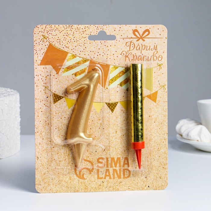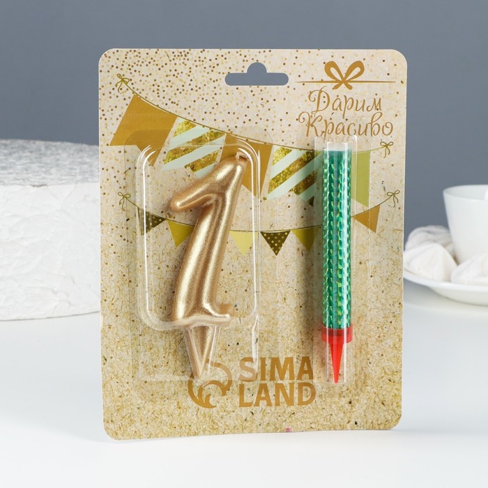 Набор Свеча для торта цифра 1 Гигант, золотая, с фонтаном, 9,5 см