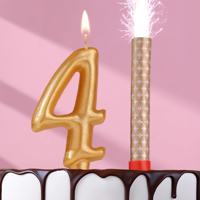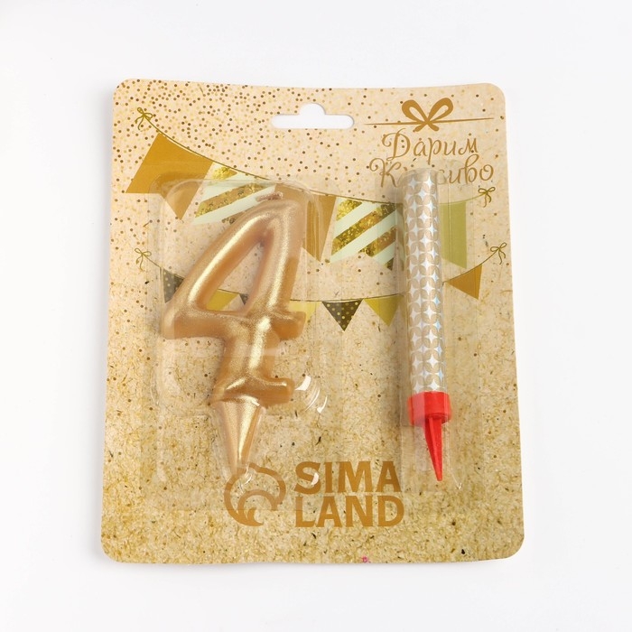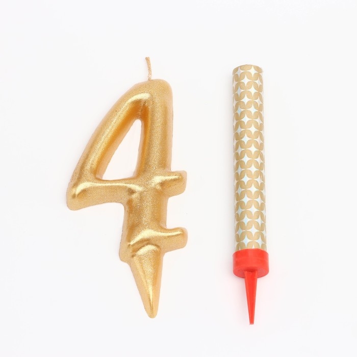 Набор Свеча для торта цифра 4 Гигант, золотая, с фонтаном, 9,5 см